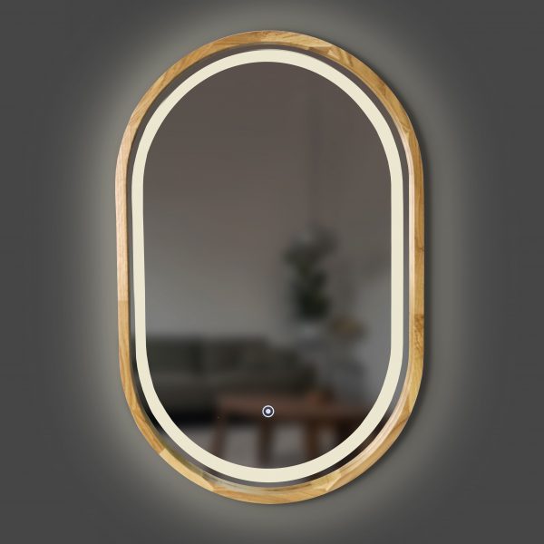- LED-Spiegel in Holzrahmen (optional: Sensor, Dimmer, Entfeuchter, Heizung)