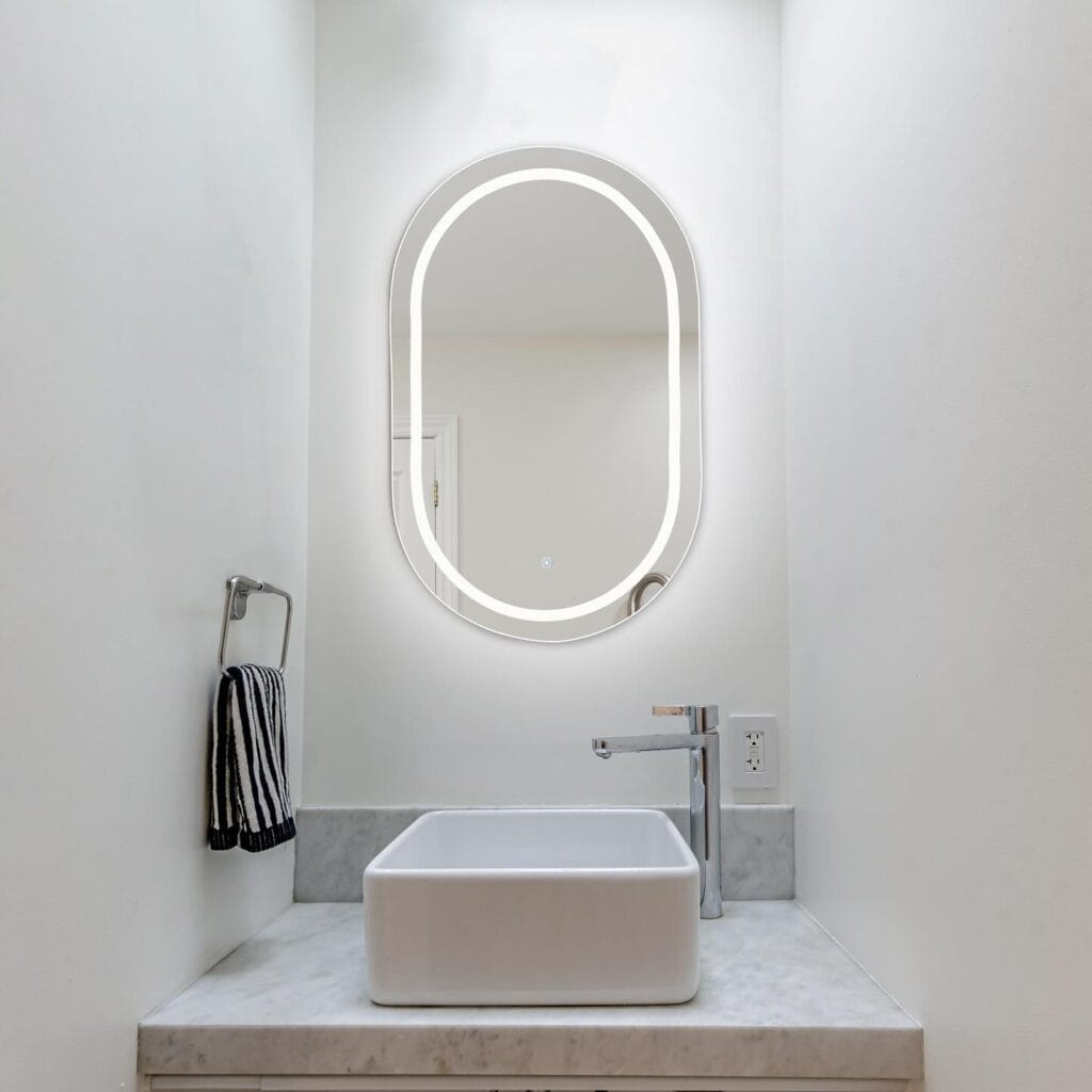 Rahmenlos, oval und mit sanfter LED-Beleuchtung – der Freedom-Spiegel von AGROMAT macht aus einem gewöhnlichen Raum ein stilvolles Stat...