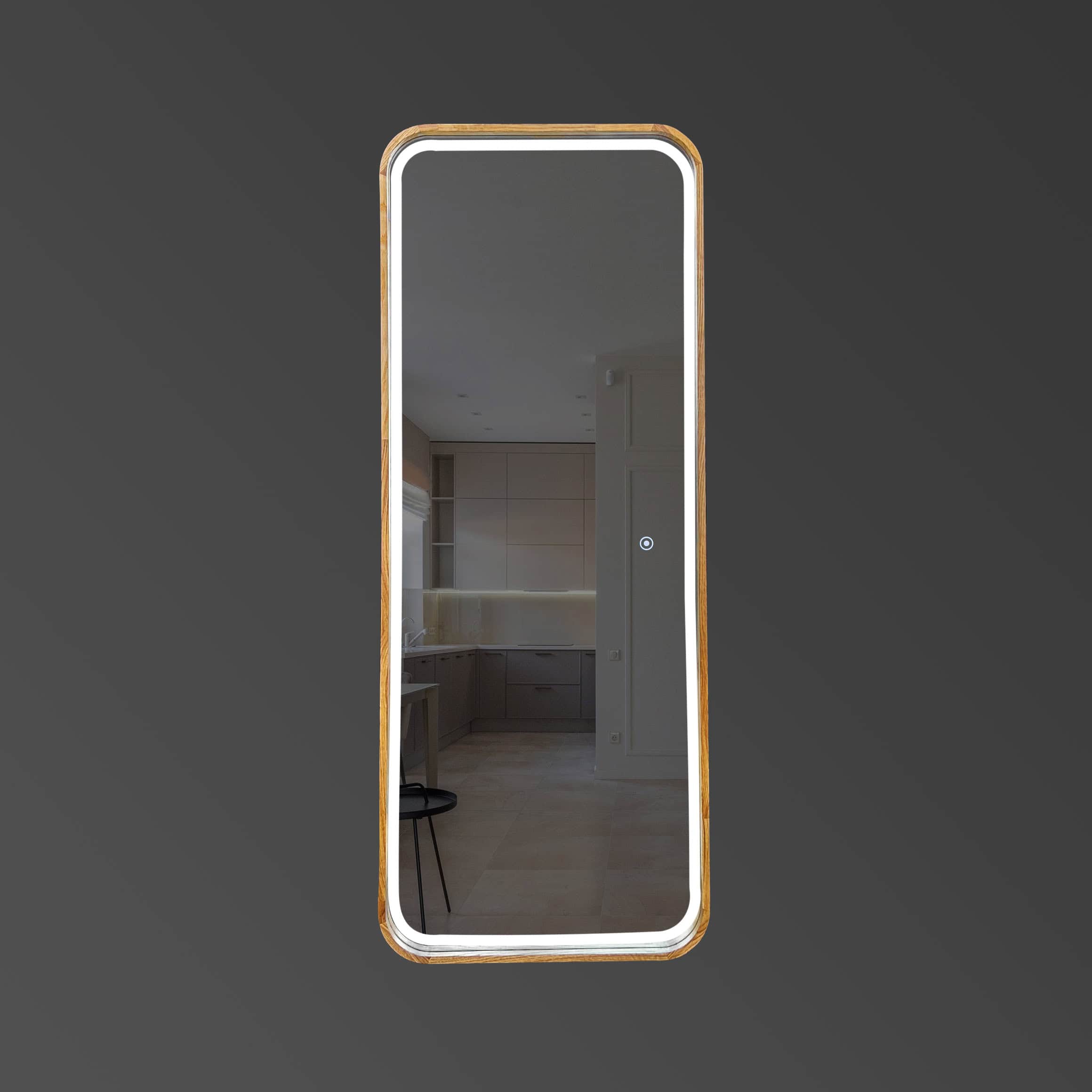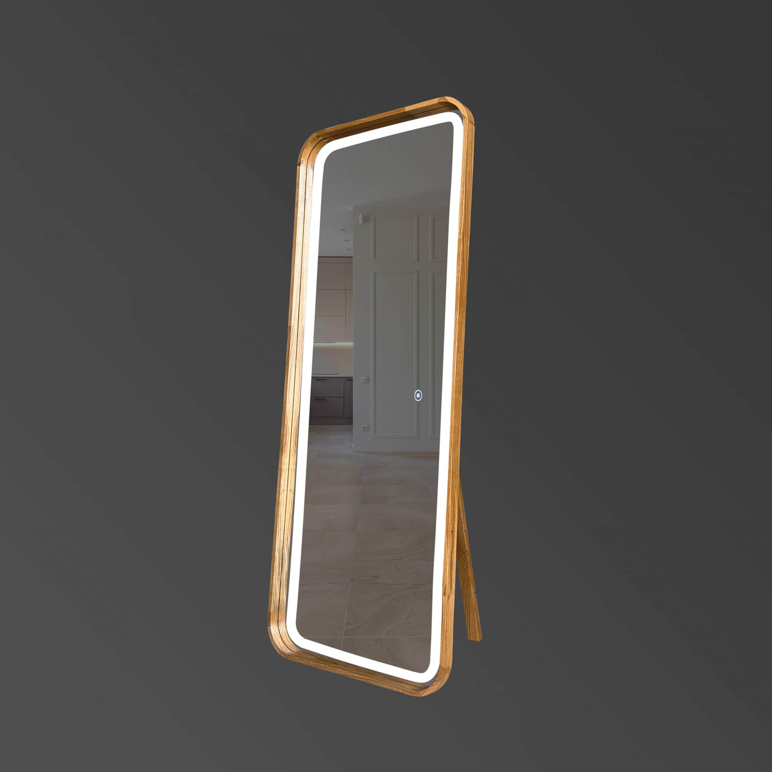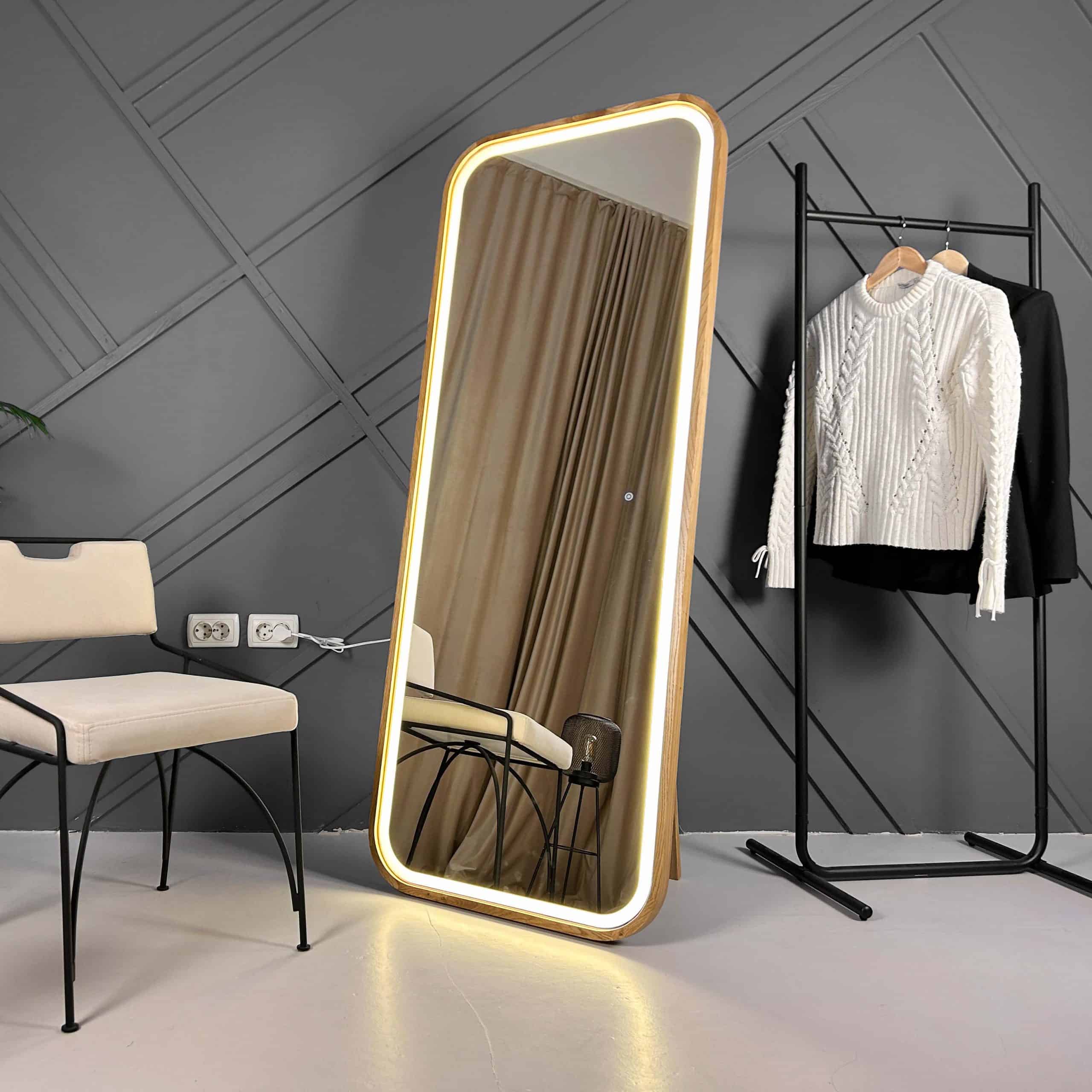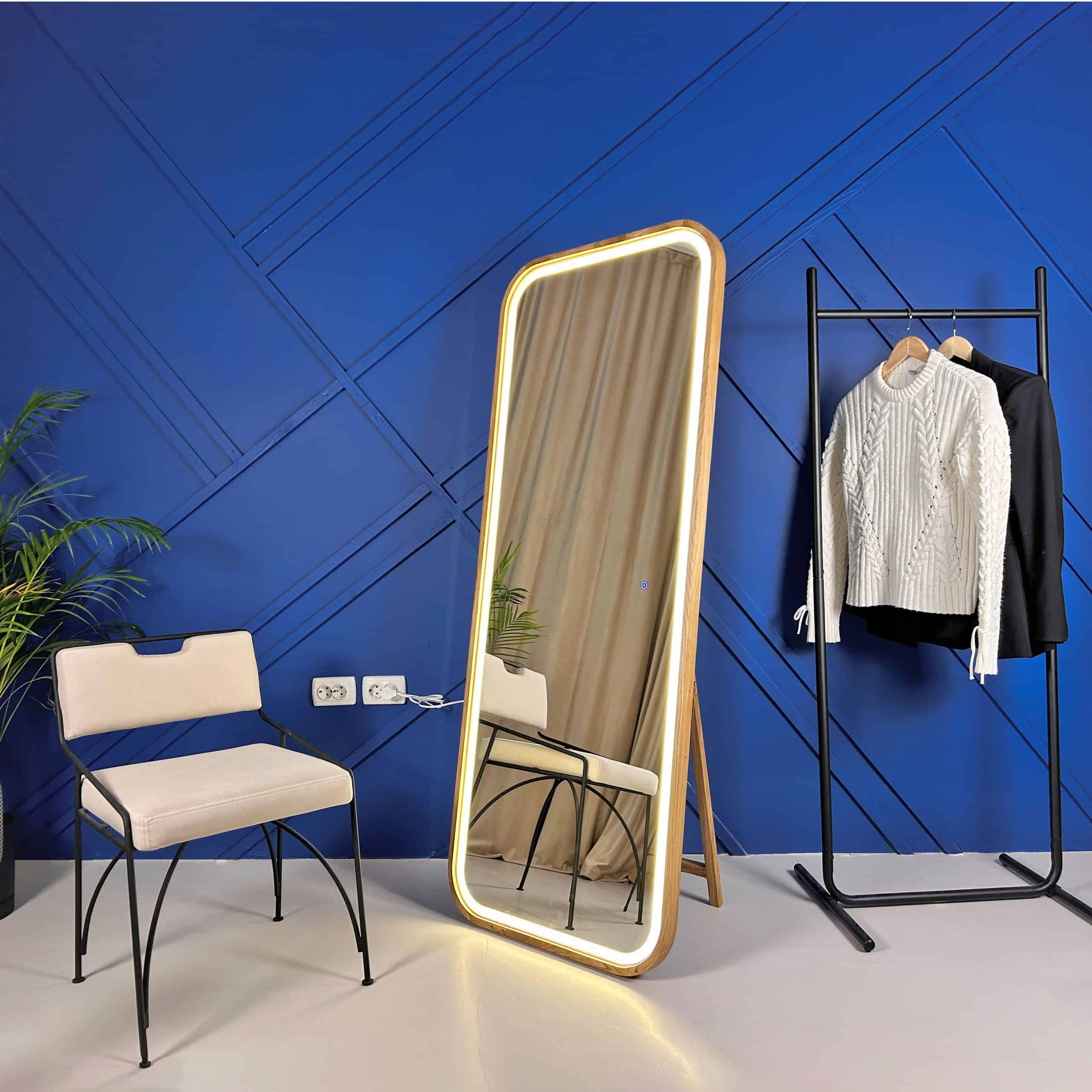The full-length mirror in a wooden frame with LED backlighting is more than just a mirror—it's a true work of art that becomes an essential part of your style. It offers not only a clear reflection but also creates an atmosphere where you can truly flourish. Every glance into it reveals not just your appearance but your individuality, highlighting every detail of your look. The soft light gently surrounding the mirror adds warmth and tenderness, embracing your reflection and creating a sense of harmony and confidence. With the "WOW effect" that the backlighting provides, your style and appearance become even more expressive.