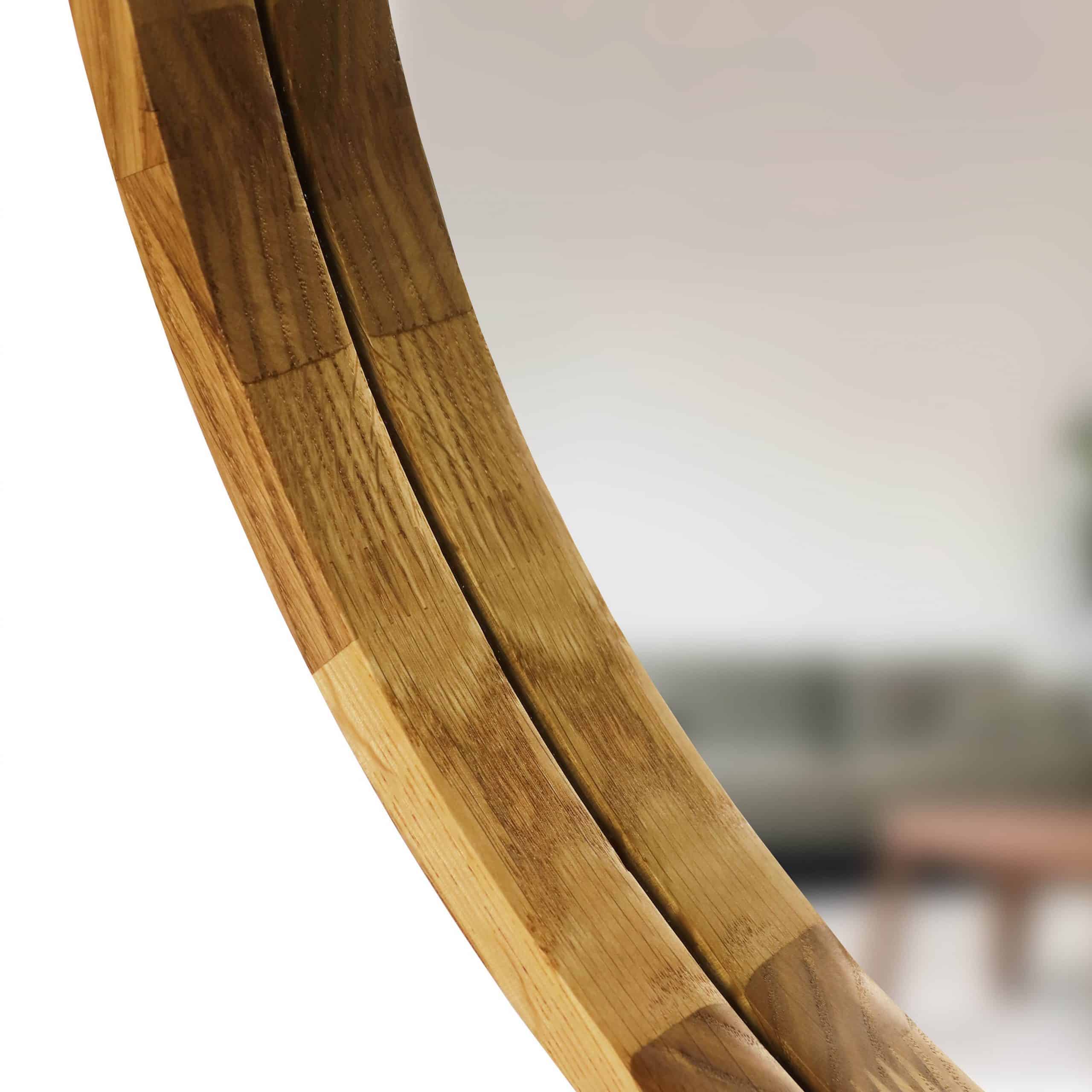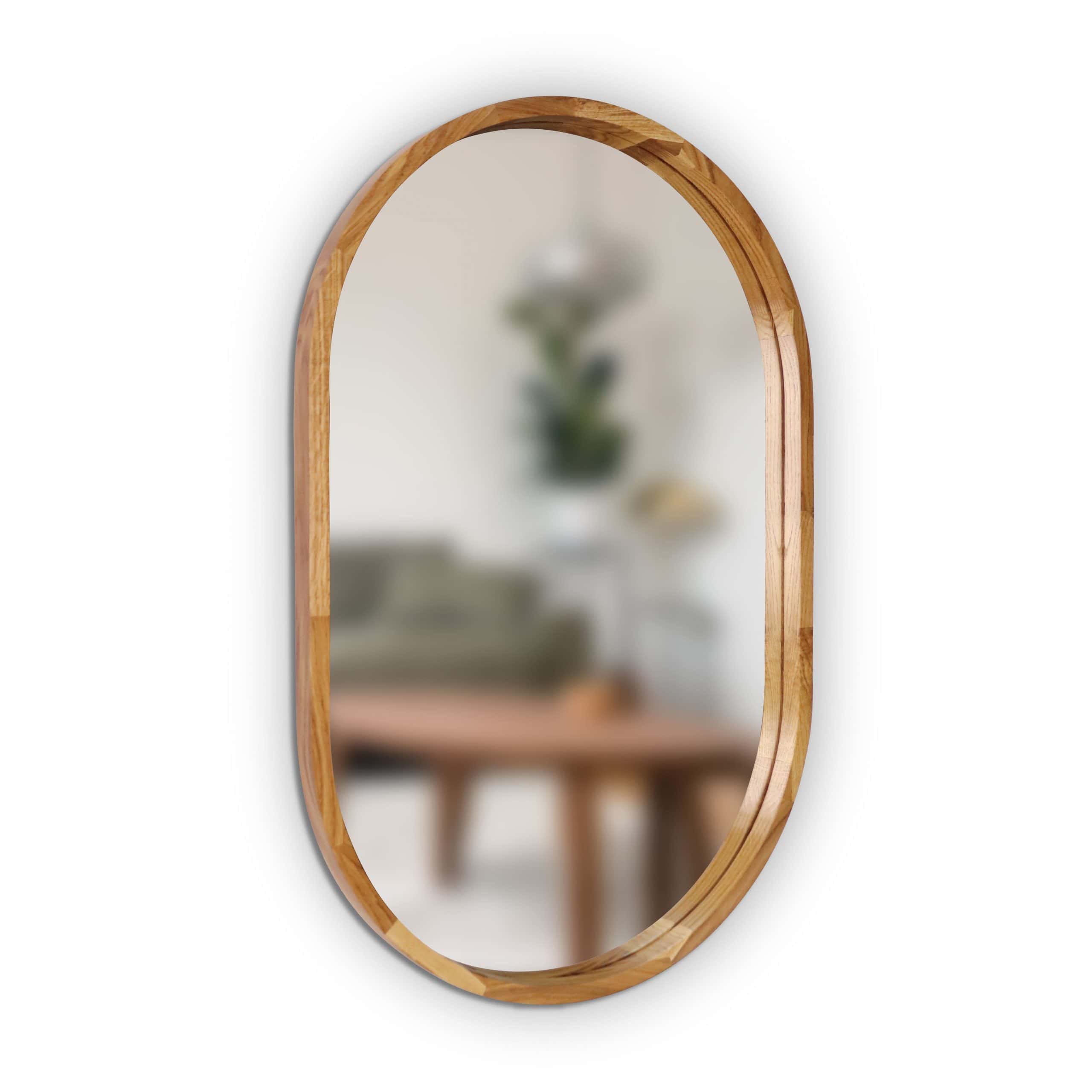 Crafted from natural wood, the frame highlights the beauty of the material, with each piece unique due to the natural wood grain. The mirror in a wooden frame becomes not just a decor element but a true focal point of your space, bringing harmony and style. The oval shape blends seamlessly with any interior, enhancing its individuality and elegance.