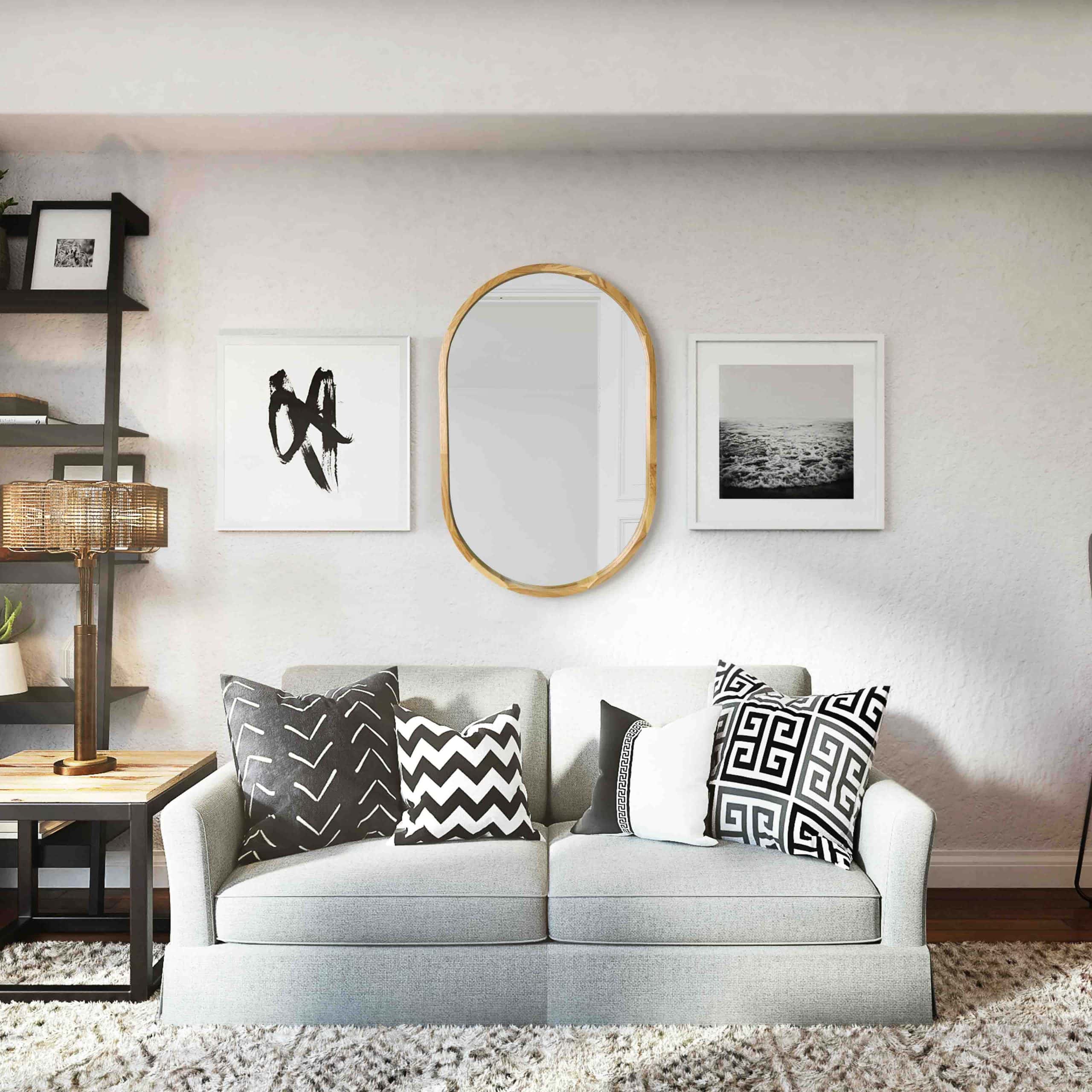 The mirror frame is crafted from select hardwoods, making each piece unique with its natural wood grain patterns. The wood resists warping or cracking under moisture or sunlight.