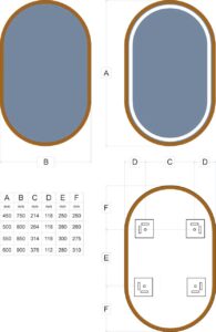 450 x 750 mm ,500 x 800 mm ,550 x 850 mm ,600 x 900 mm |