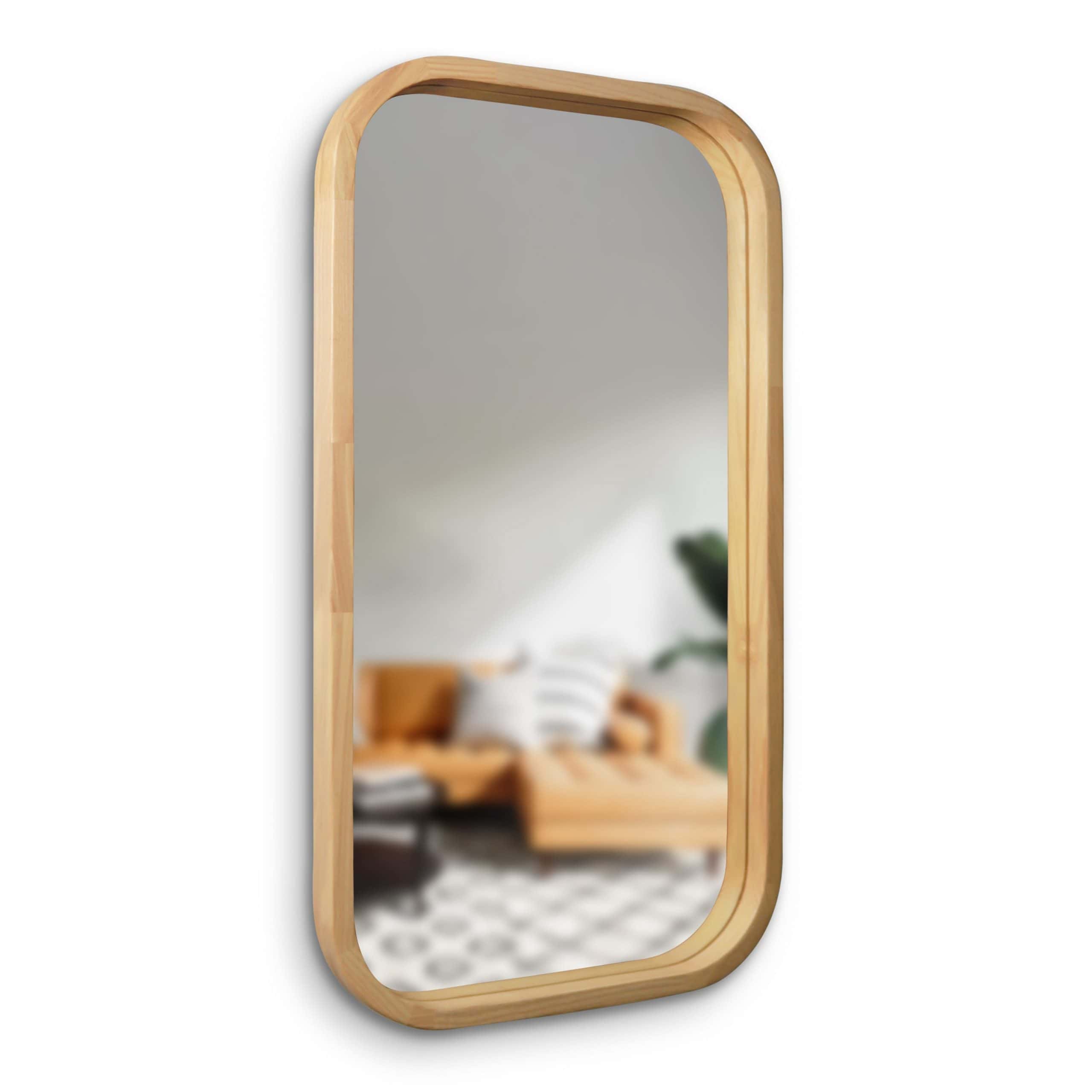This rectangular mirror with gently rounded corners and a wooden frame is the perfect choice for those seeking refined simplicity and natural beauty. Its understated yet captivating design brings charm and warmth to any room. The frame, crafted from natural wood, adds harmony and organic style to your space, reflecting your attention to detail and desire to surround yourself with the finest elements.