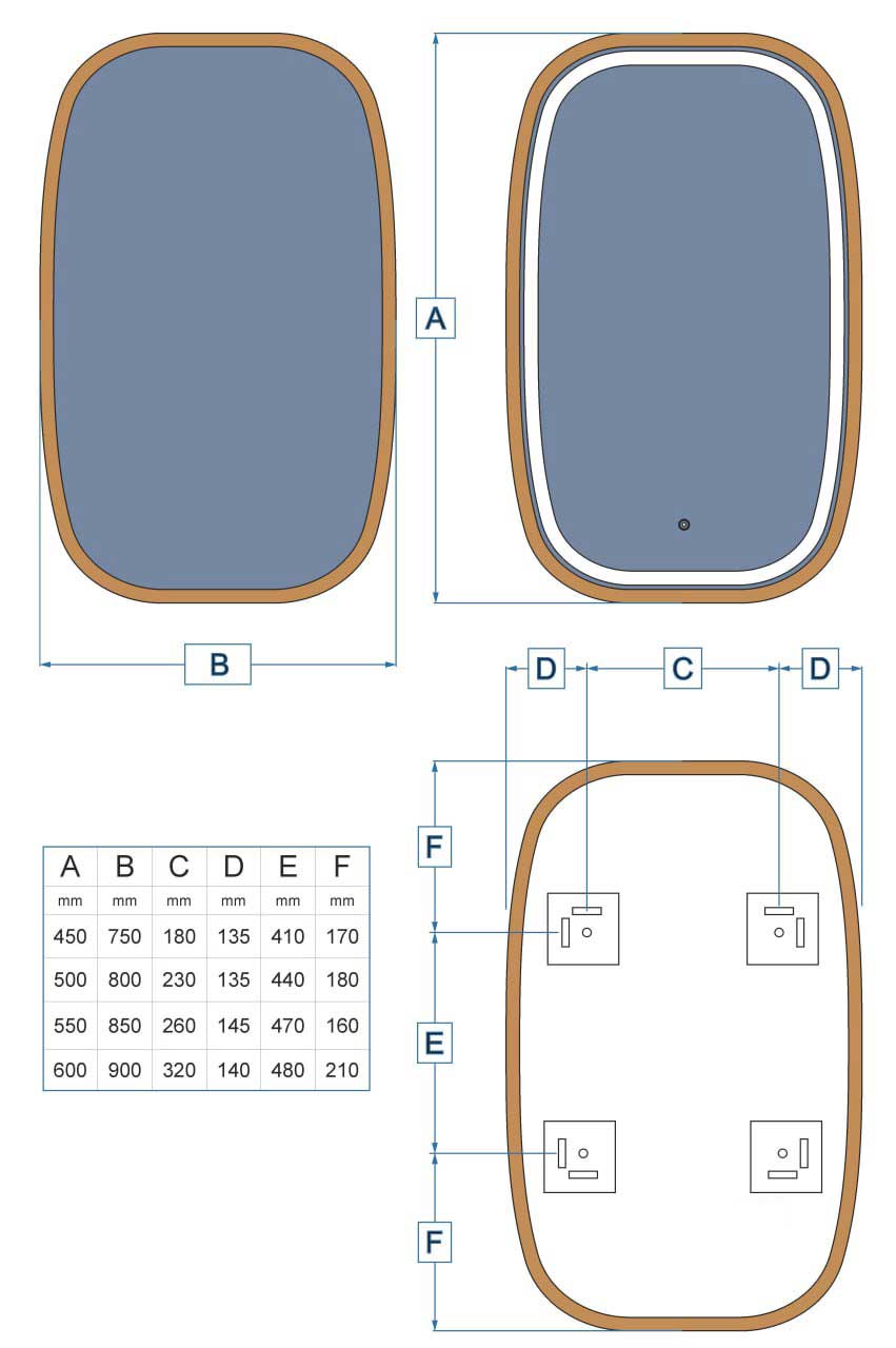 LED Rectangular mirror Reliability ONE
