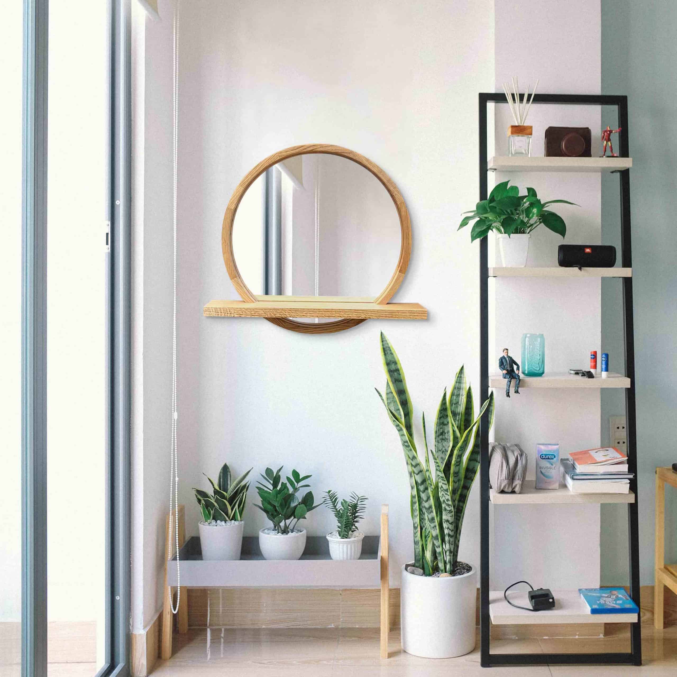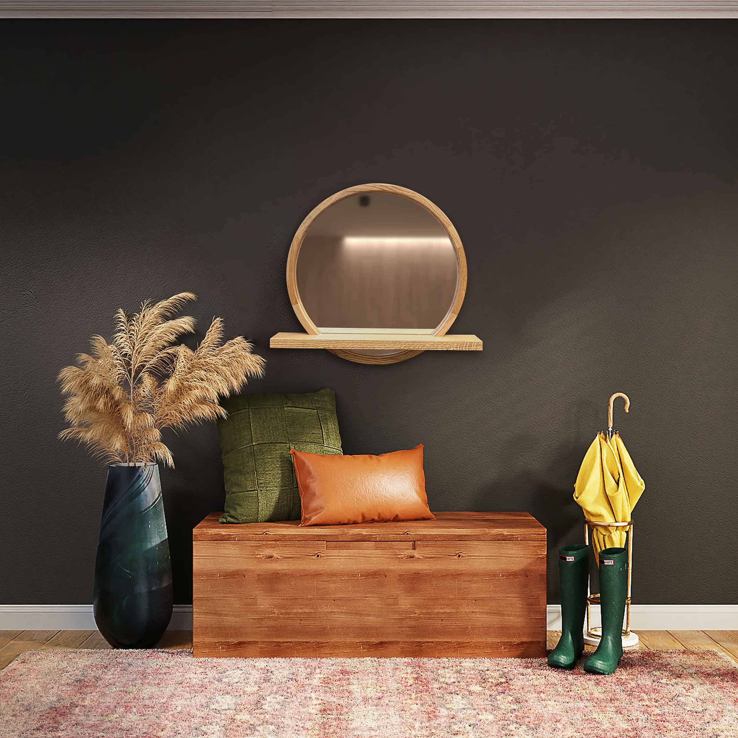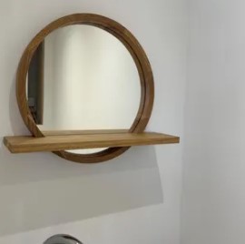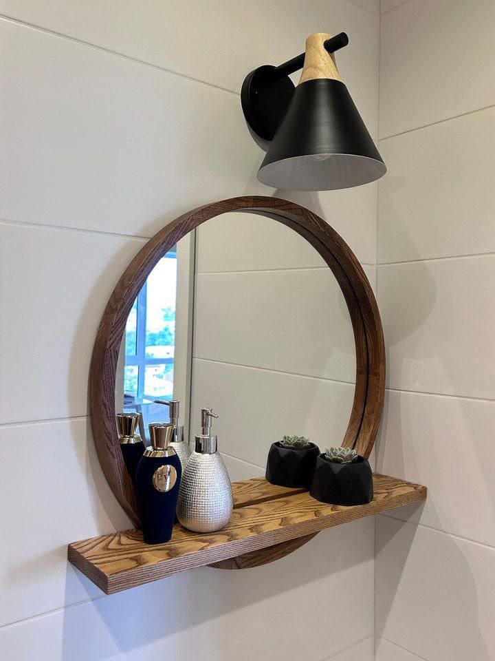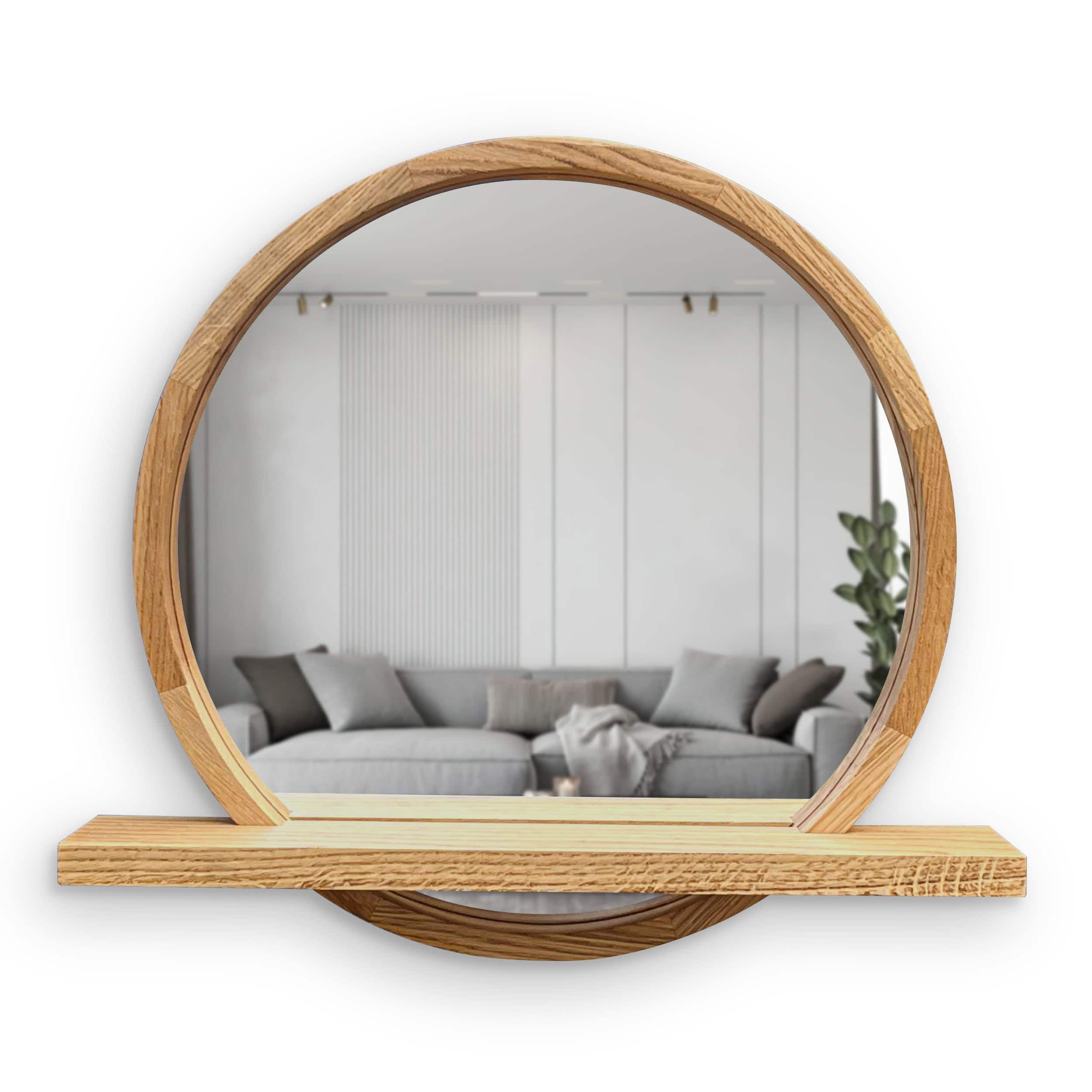 In the reflection of your unique beauty lies a wooden-framed mirror that creates a special atmosphere of coziness. This elegant piece not only adorns your space but invites soft rays of sunlight to dance upon its smooth surface. The mirror with a shelf becomes a quiet witness to your daily inspiration, providing a place for your cherished trinkets. It absorbs the light of the room, scattering it in a magical glow, filling your interior with harmony and warmth.