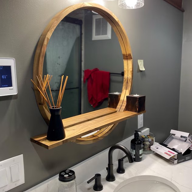 The mirror is beautiful! Very high quality wood, with lovely graining. It looks so nice in our space. The seller made and shipped the mirror timely, but It took a bit longer to get here than planned. However, it’s worth it! Really happy with the purchase overall and will look to this shop for future mirror purchases.