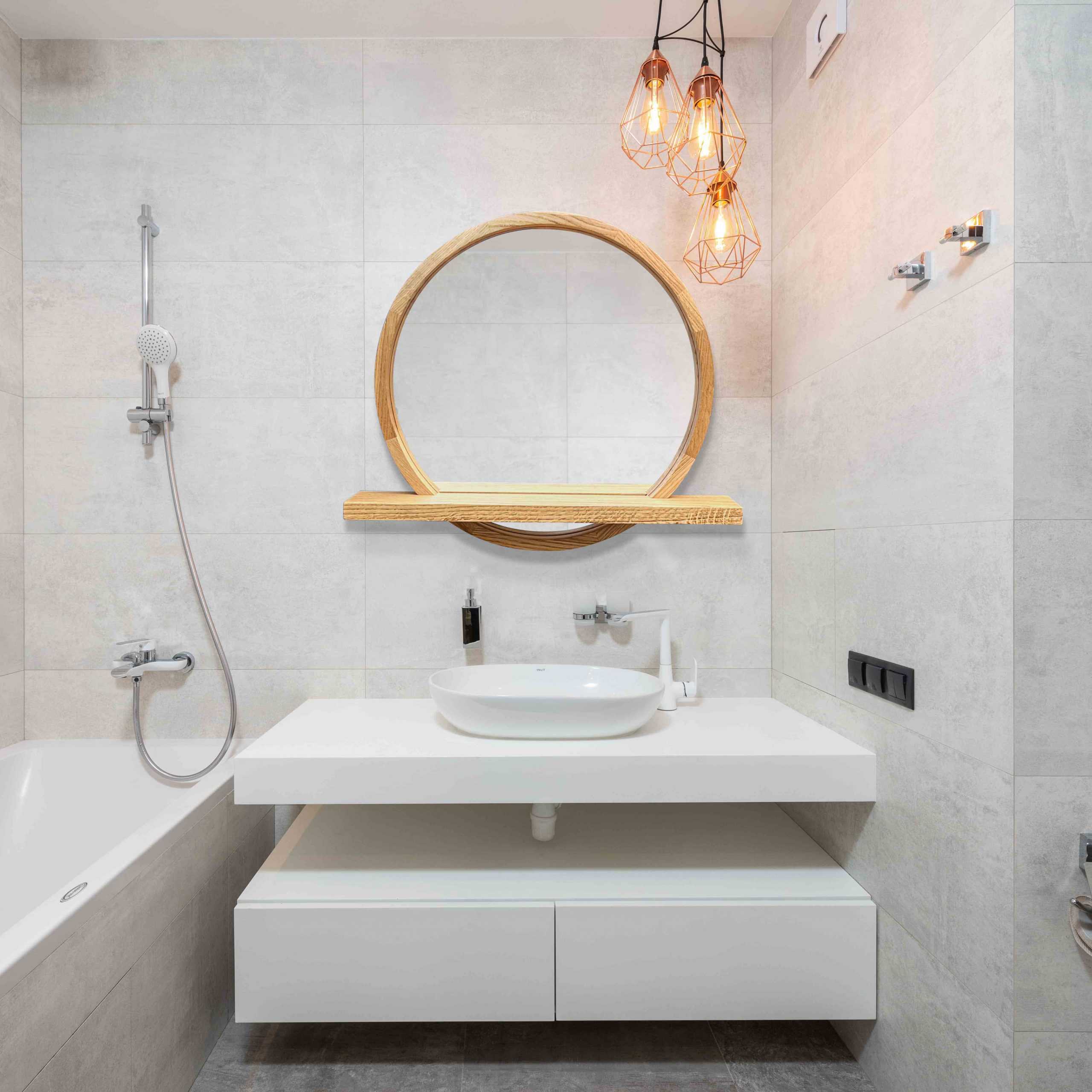 The mirrors are certified to IP44 protection class, allowing their use in bathrooms and other high-humidity areas. The frame is treated with moisture-resistant oil wax that penetrates the wood fibers, protecting it from external influences. The glass surface of the mirror has a multilayer coating: the first layer is reflective, the second is protective, and the third protects the previous layers from mechanical and climatic impacts.