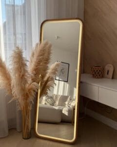 Ses proportions parfaites, sa lumière douce qui sublime chaque silhouette, et le cadre en bois naturel — c’est bien plus qu’un objet déco.