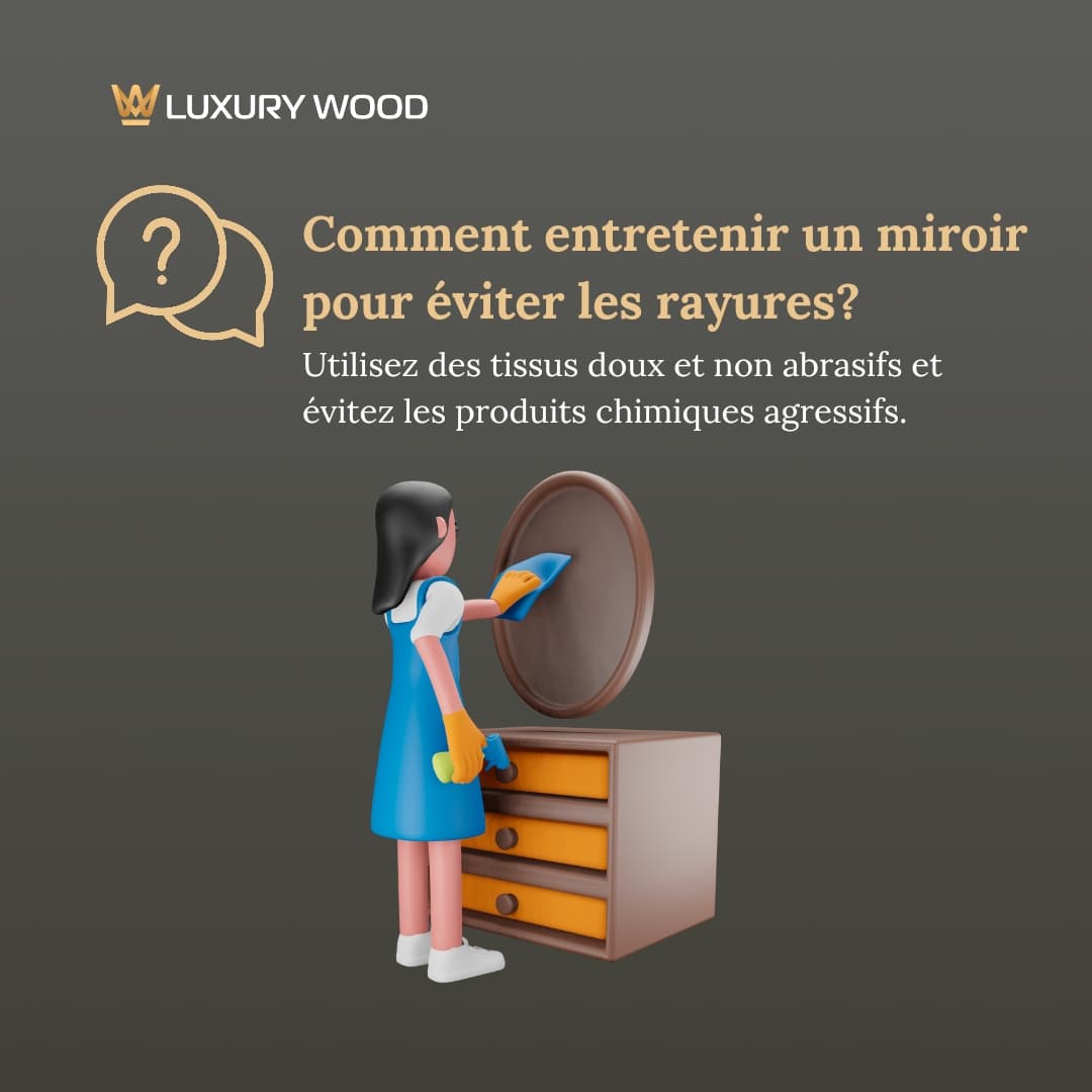Il est important d’utiliser des tissus doux et non abrasifs et d’éviter les produits chimiques agressifs.