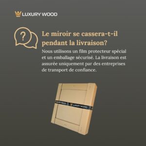 Nous garantissons un emballage fiable avant l’expédition. Tous les miroirs Luxury Wood sont renforcés d’un film protecteur spécial. De plus, la livraison est effectuée uniquement par des entreprises de transport de confiance.