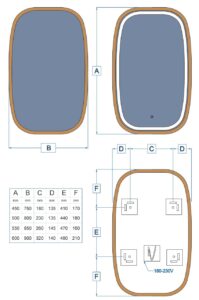 Nous utilisons des composants LED de haute qualité pour garantir une longue durée de vie. L’éclairage peut être à la fois frontal et arrière pour un « effet WAOUH ». Vous pouvez aussi choisir uniquement un éclairage frontal ou arrière. L’interrupteur tactile permet de régler la luminosité et est disponible en deux options : tactile ou activé par un mouvement de la main.