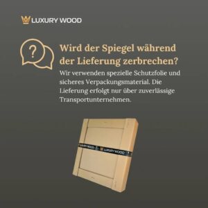 Wir sorgen für eine zuverlässige Verpackung vor dem Versand. Alle Luxury Wood Spiegel sind mit einer speziellen Schutzfolie verstärkt. Zudem erfolgt die Lieferung ausschließlich durch vertrauenswürdige Transportunternehmen.