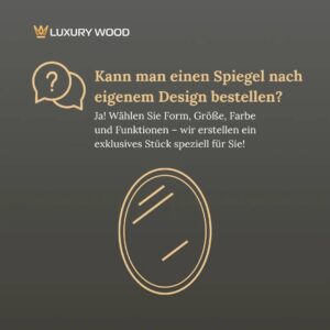 Ja! Wir fertigen Spiegel nach individuellen Projekten an. Sie können Form, Größe, Holzart, Rahmenfarbe und zusätzliche Funktionen wie beispielsweise Beleuchtung auswählen.