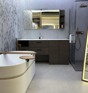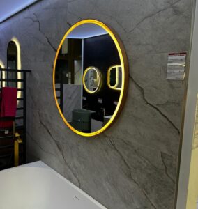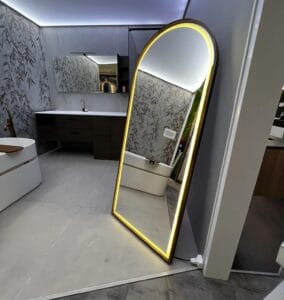 Zusätzlich wurde ein dekorativer Spiegel im hoteleigenen Salon installiert, der sich harmonisch in das Interieur einfügt und ein Gefühl von Weite und Helligkeit schafft.