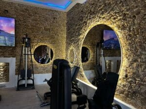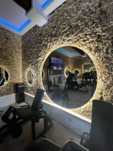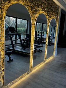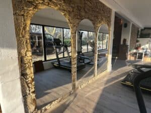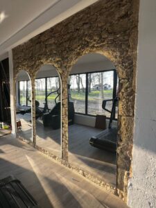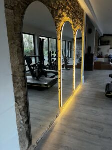 Unser Team hat erfolgreich ein Projekt zur Herstellung und Installation maßgefertigter Spiegel im Fitnessraum des Hotels Mahawellness France abgeschlossen.