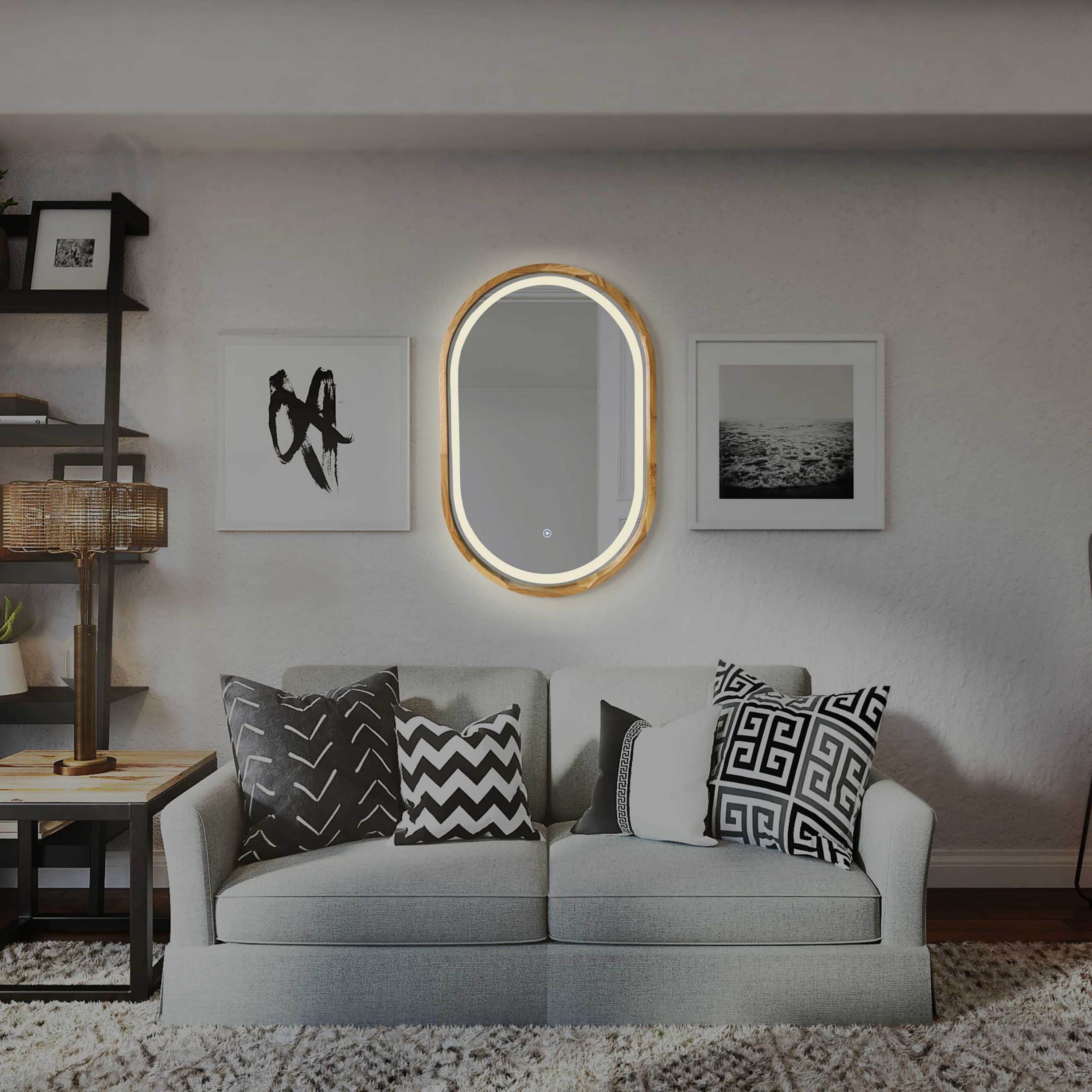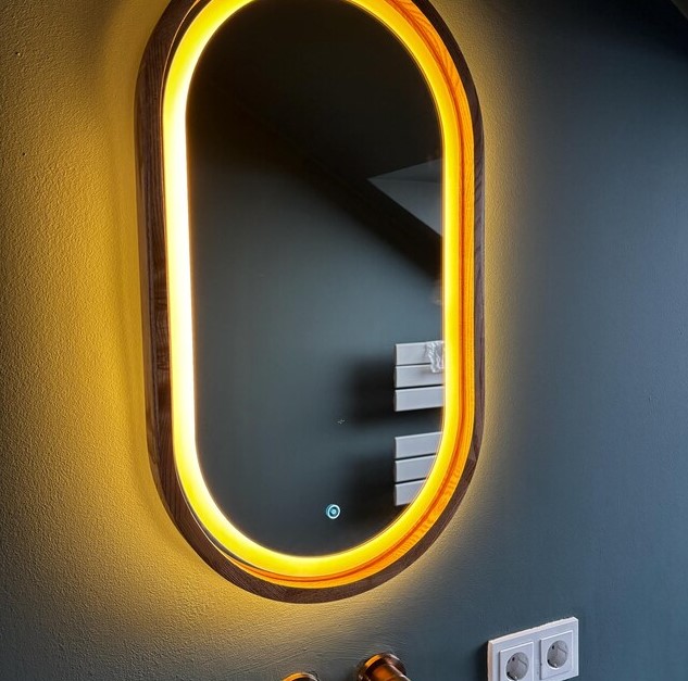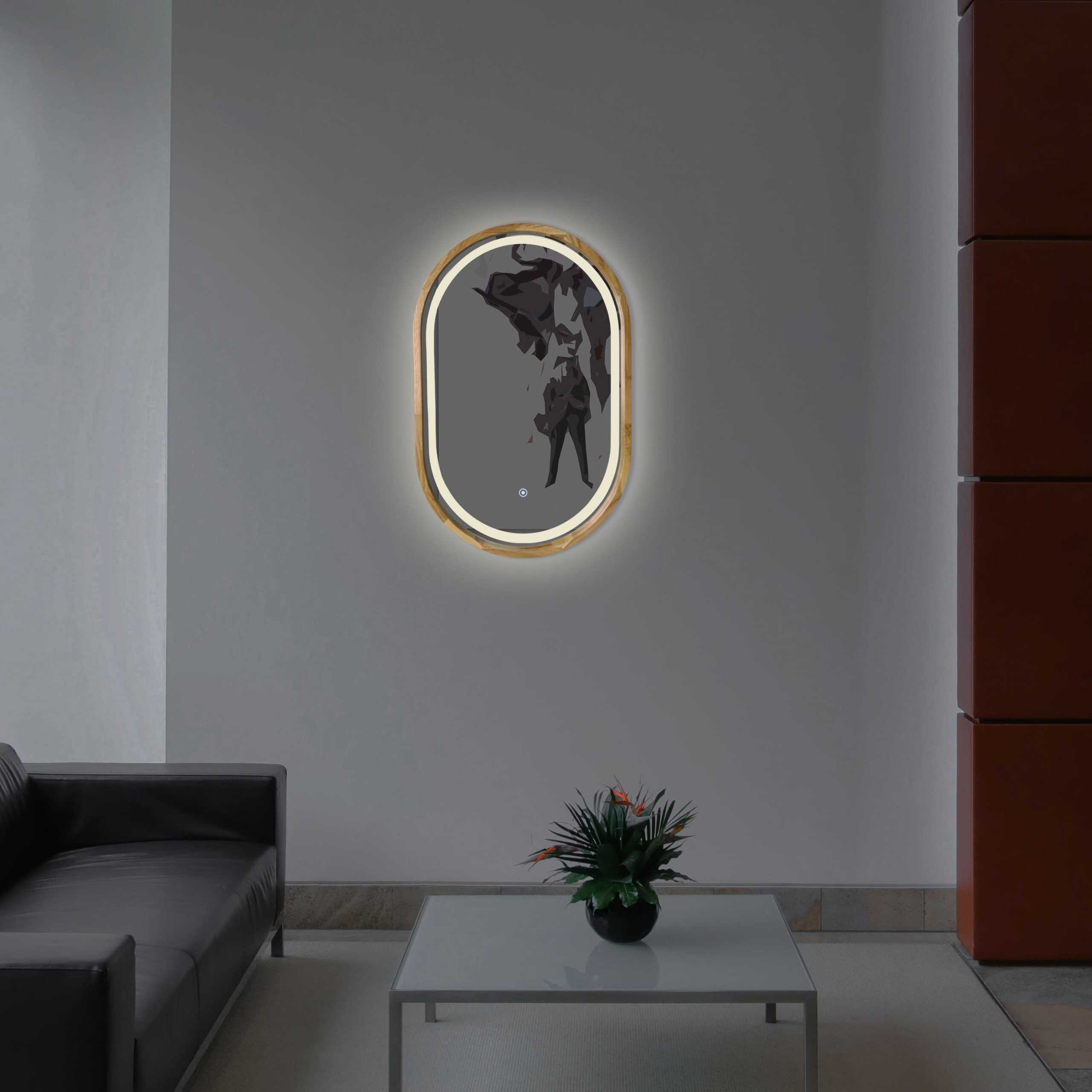 Der ovale Spiegel mit LED-Beleuchtung im Holzrahmen ist die perfekte Kombination aus Eleganz und moderner Technologie. Seine weiche Form verleiht Ihrem Interieur Raffinesse, während die LED-Beleuchtung einen unglaublichen Effekt erzeugt, der jeden Moment in Ihrem Zuhause in ein wahres Kunstwerk verwandelt. Dieser Spiegel ist nicht nur ein funktionales Element, sondern auch ein echter Blickfang, der Ihrem Raum einen einzigartigen Stil verleiht.