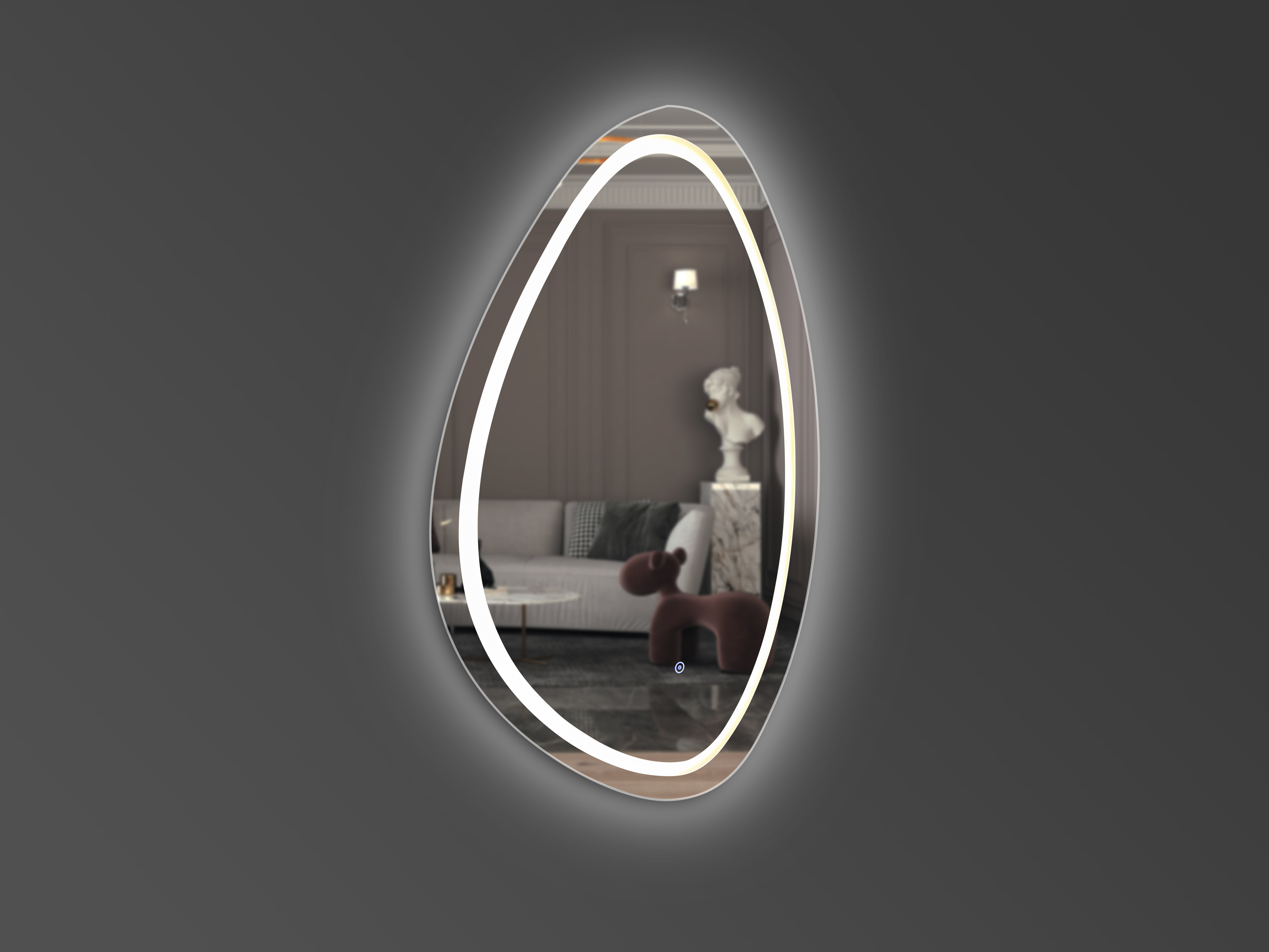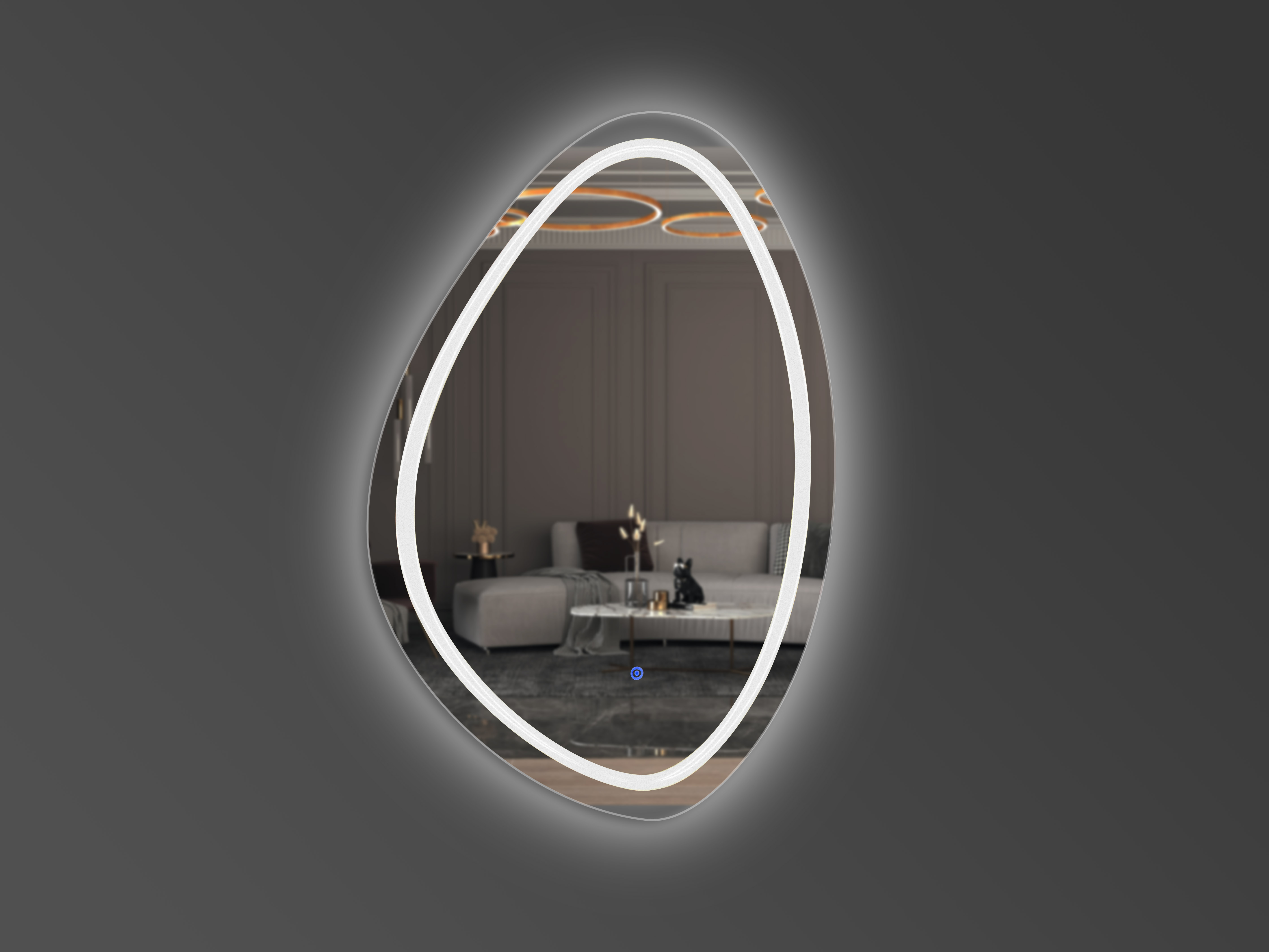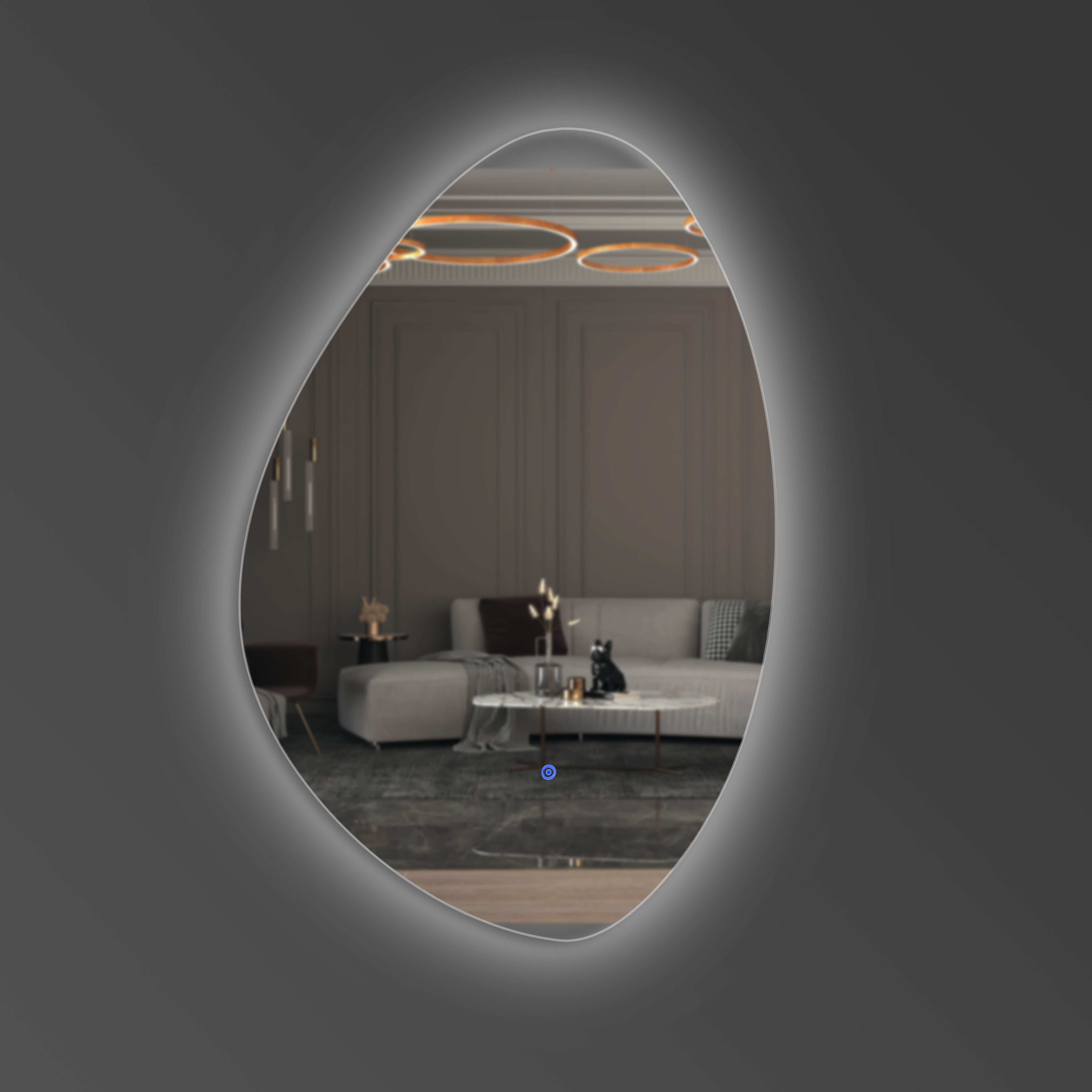 Wir verwenden hochwertige LED-Komponenten in unseren Produkten, die die Langlebigkeit des Produkts garantieren. Die Einzigartigkeit unserer Beleuchtung spiegelt sich auch darin wider, dass das Licht sowohl vor als auch hinter dem Spiegel leuchtet und so einen “WOW-Effekt” erzeugt. Wenn Sie jedoch möchten, können Sie nur Front- oder Aura-Beleuchtung angeben. Unser Touch-Schalter enthält eine Helligkeitsregelungsfunktion, mit der Sie die für Sie bequeme Beleuchtung auswählen können.