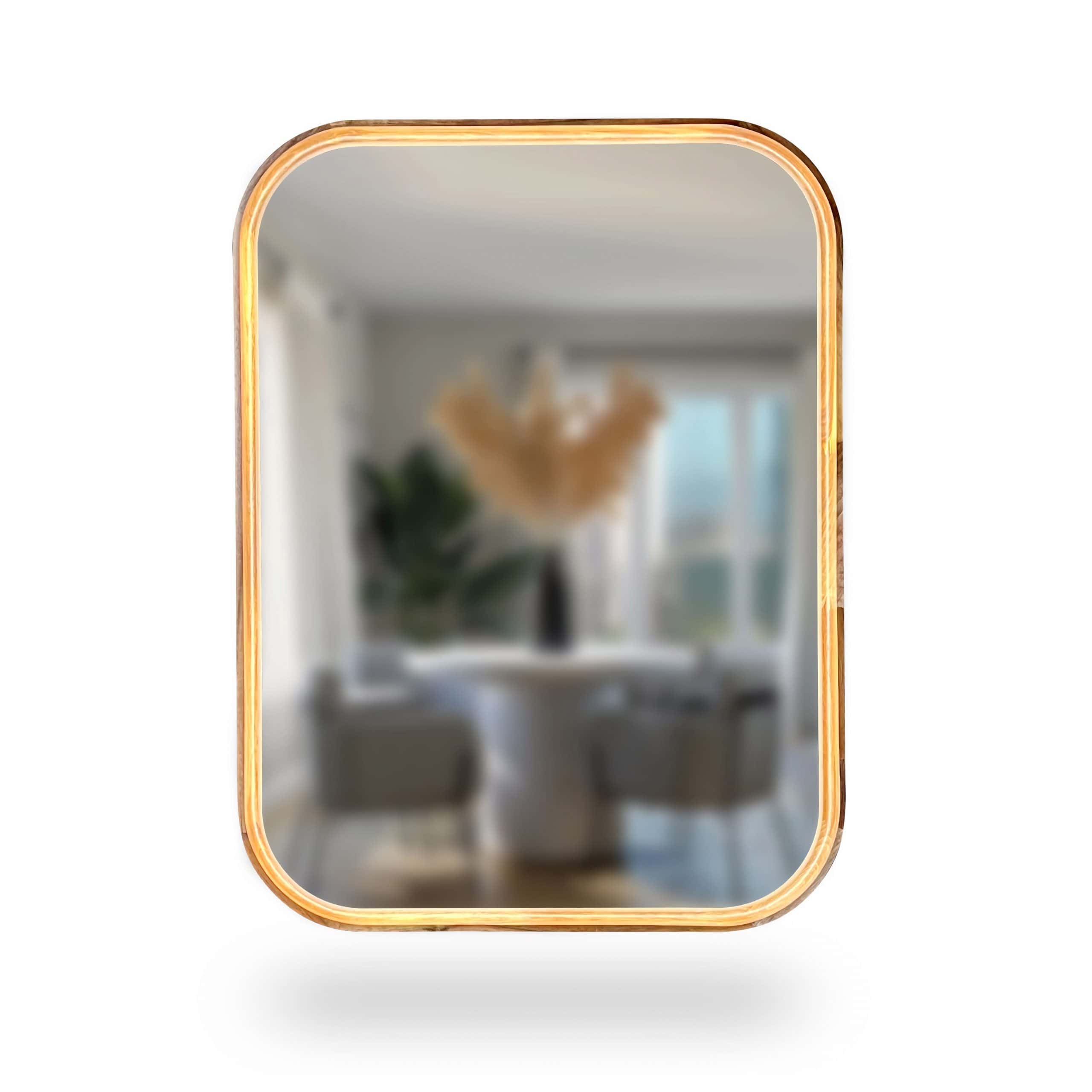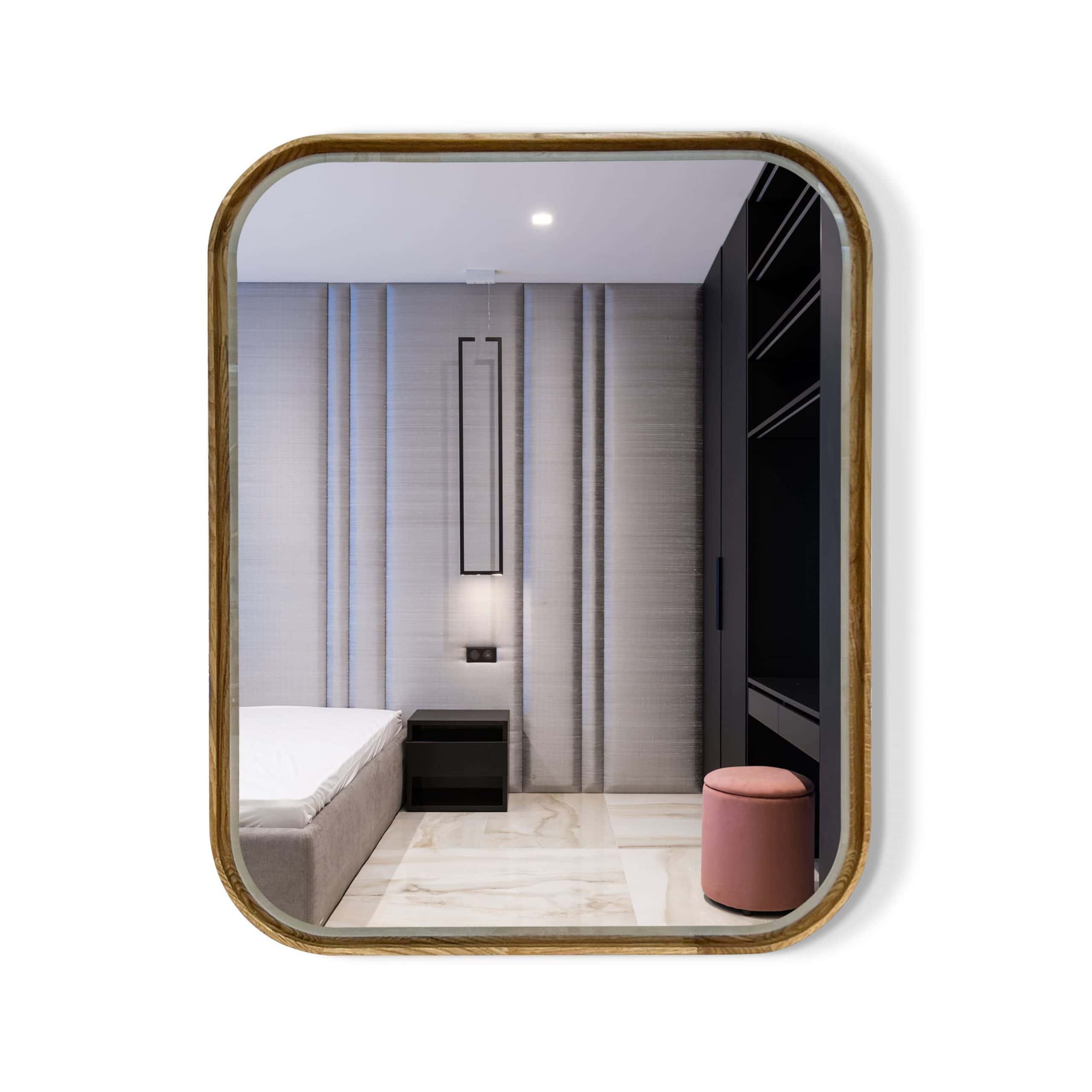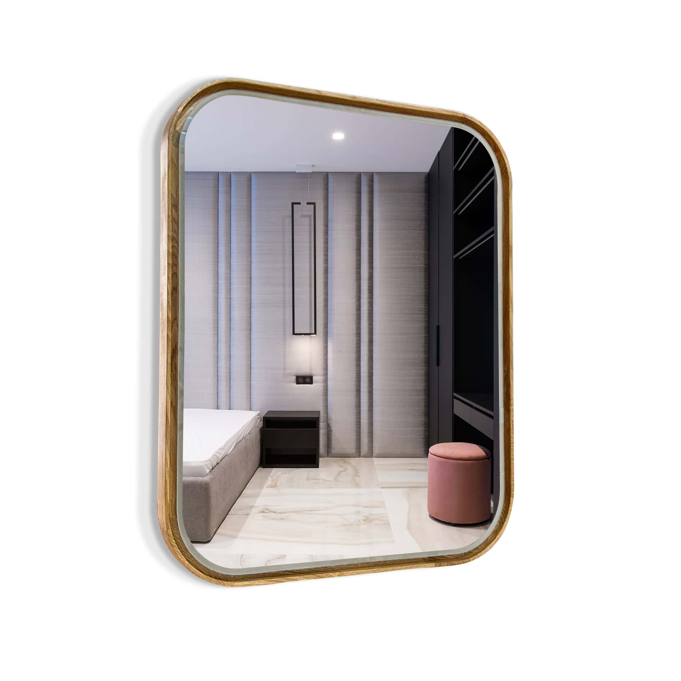 Wir verwenden hochwertige LED-Komponenten, um eine lange Lebensdauer zu gewährleisten. Die Beleuchtung dieses Spiegelmodells ist frontseitig, was eine angenehme Beleuchtung im Raum hinzufügt und hilft, die Reflexionen besser zu sehen. Das Licht breitet sich direkt aus, indem es sich von dem Holzrahmen reflektiert, was einen besonderen Effekt hinzufügt, da das Holz seine Wärme und Schönheit überträgt! Der Touch-Schalter ermöglicht es Ihnen, die Helligkeit einzustellen und ist in zwei Varianten erhältlich: berührungsempfindlich oder kontaktlos, aktiviert durch Handbewegungen.