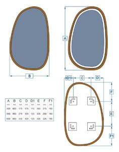 - Akzentstück – Die asymmetrische Form macht den Spiegel zu einem einzigartigen Dekorelement, das als zentrales Highlight im Raum genutzt werden kann.