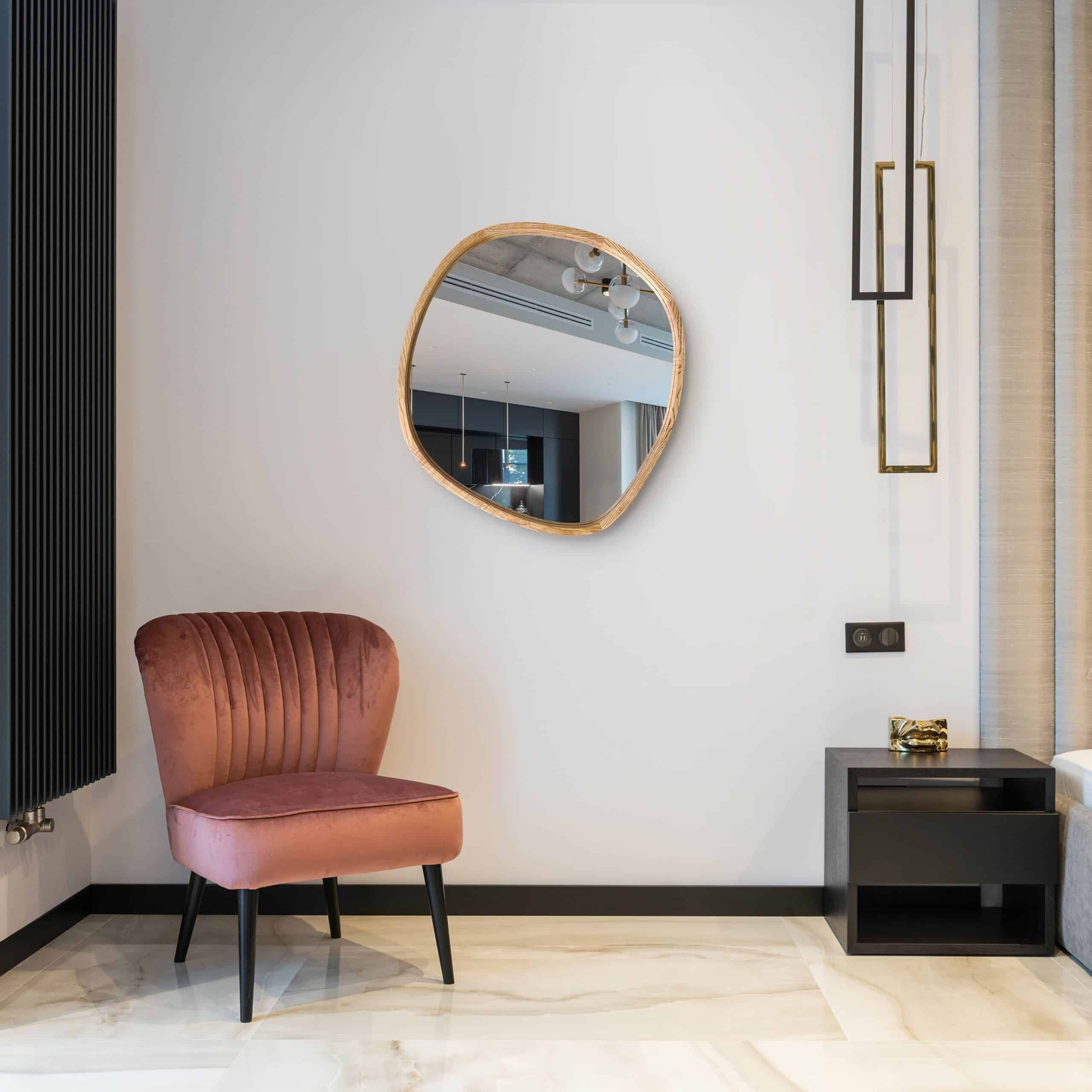 - Akzentstück – Die asymmetrische Form macht den Spiegel zu einem einzigartigen Dekorelement, das als zentrales Highlight im Raum genutzt werden kann.
