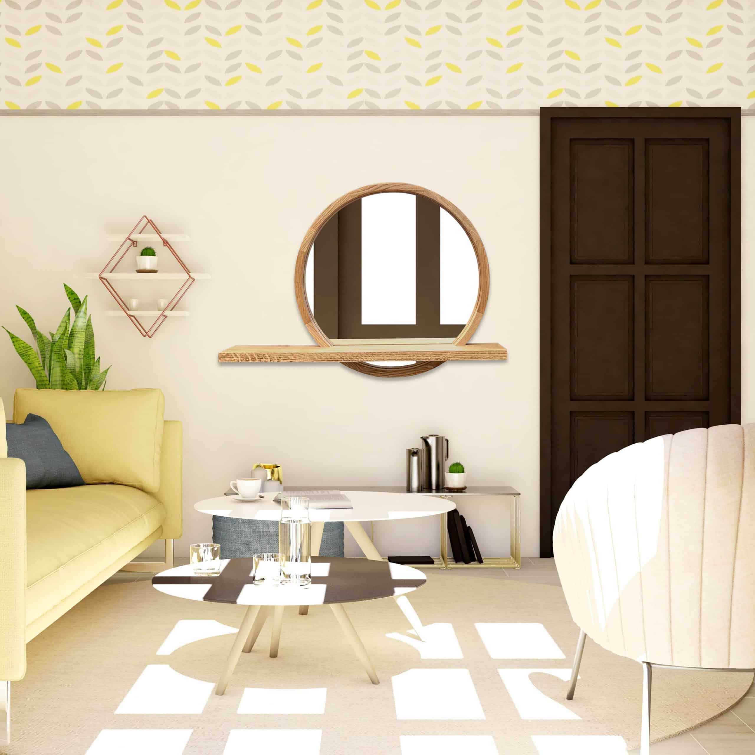Runder Spiegel mit asymmetrischem Regal Sunset