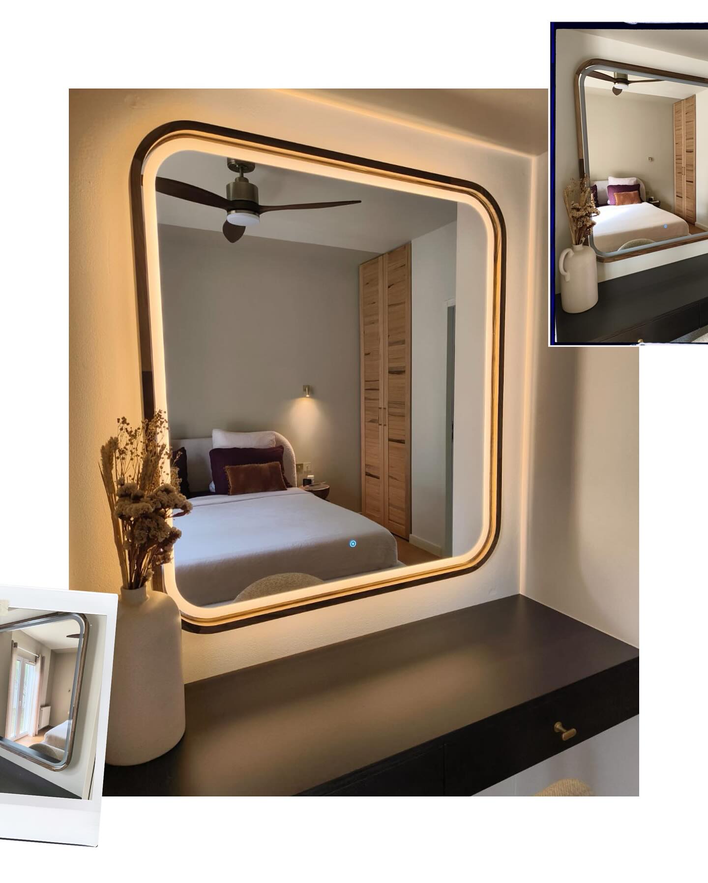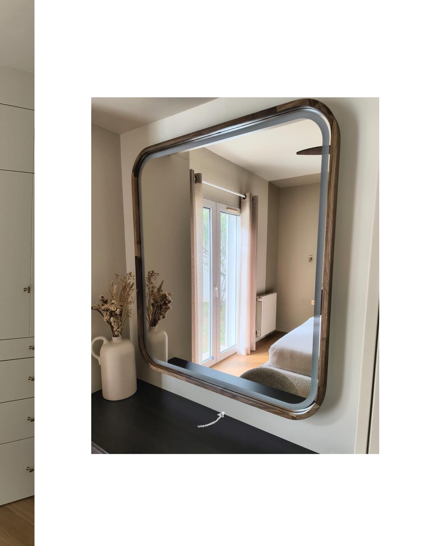 Foto-Feedback von einer Kundin, die sich für einen Luxury Wood Spiegel entschieden hat.